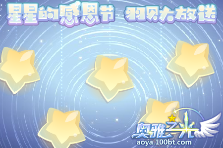 11月7日~11月27日,每使用奥币铸造100羽贝即可点亮1盏感恩的星星灯(最多可点亮10盏)。